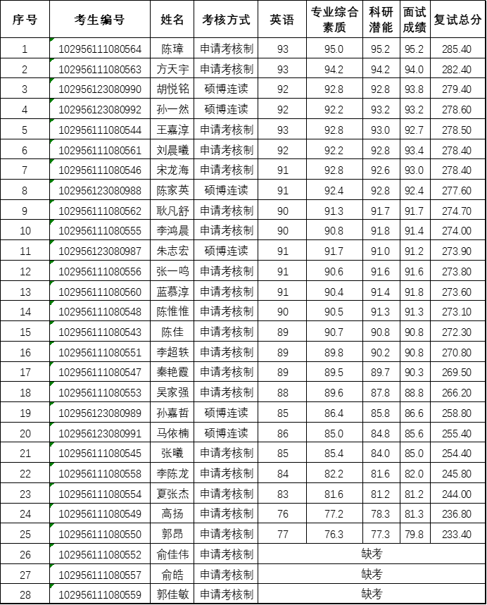由机械工程学院组织的2026年博士面试考核已经结束,现将考核成绩公布如下: