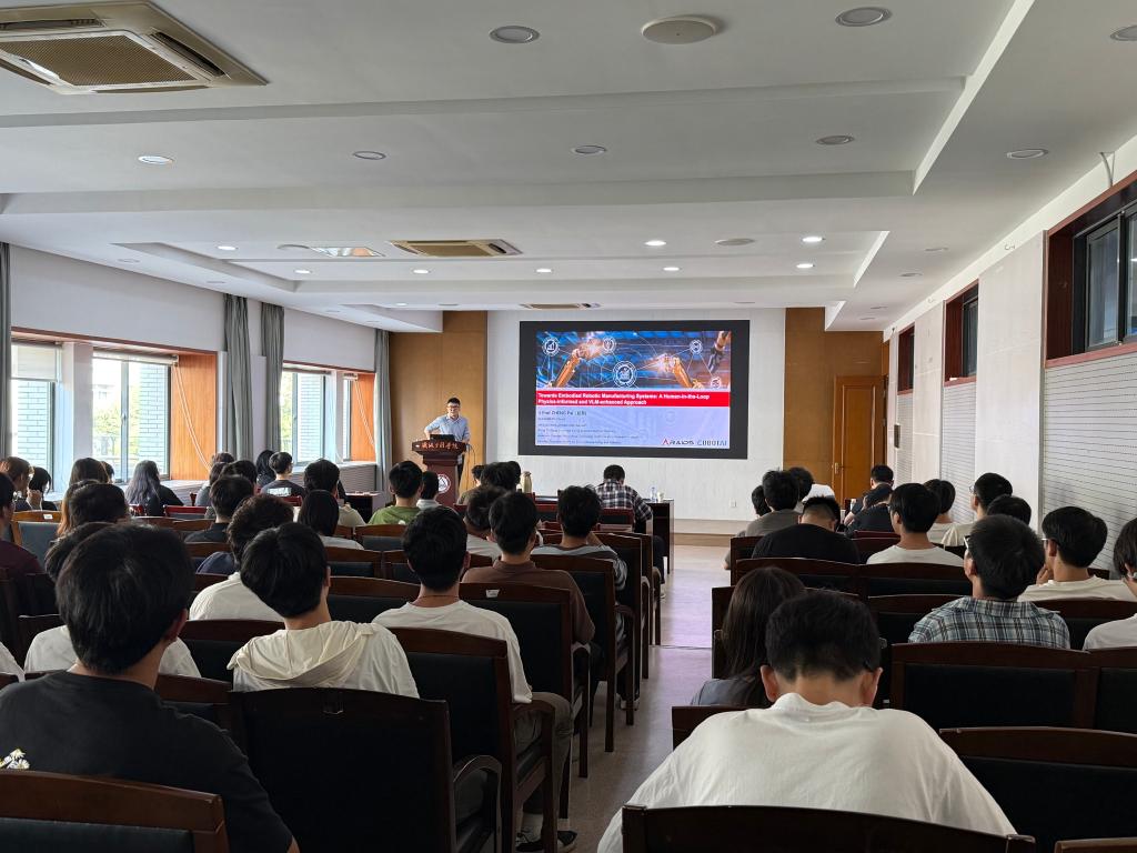 10月17日,“机缘大讲堂”系列学术讲座第二十六讲在机械楼C302会议室顺利举行。香港理工大学郑湃副教授应邀来我院访问交流,并作了题为《迈向具身机器人制造系统:一种基于物理信息与视觉语言模型的人在环方法》的学术报告。报告由机械工程学院吉卫喜教授主持,学院师生代表100余人聆听了报告。