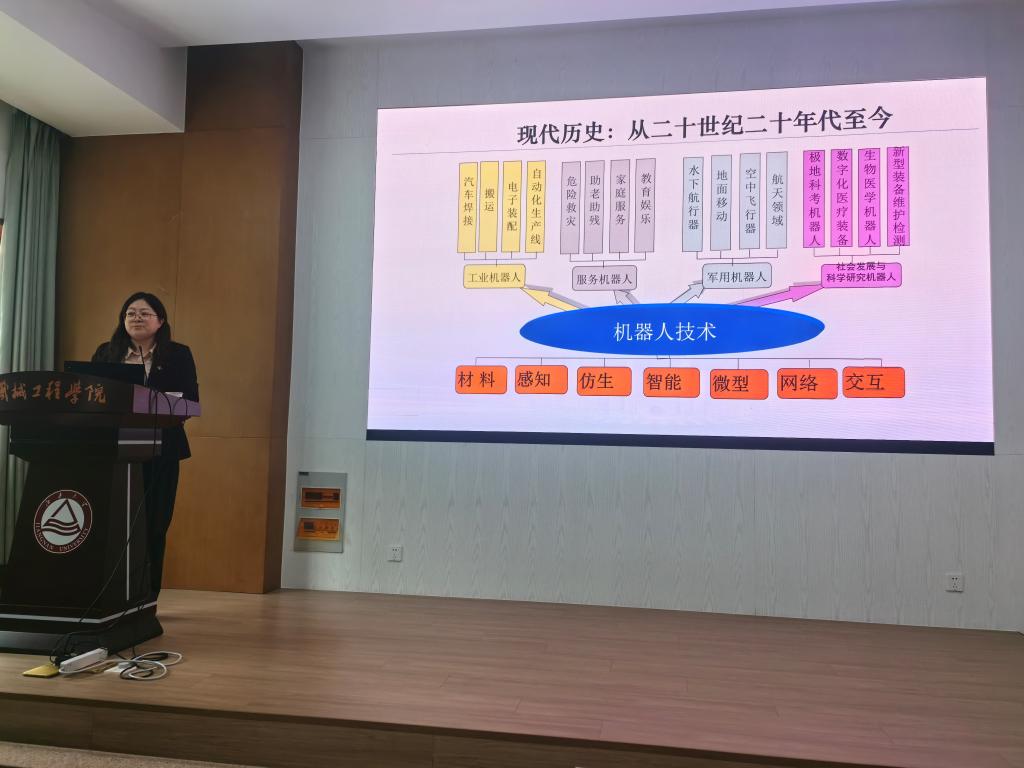 2025年11月17日下午,由研究生院主办的江南讲坛第一百五十四讲,既“机缘大讲堂”系列学术讲座第二十九讲在机械楼C302报告厅顺利举行。教育部、北京市高层次人才北京邮电大学李端玲教授应邀来我院访问交流,并做了题为《基于变胞思路的机器人构型创新设计》的学术报告。报告由机械工程学院副院长王东祥主持,学院师生代表100余人聆听了报告。